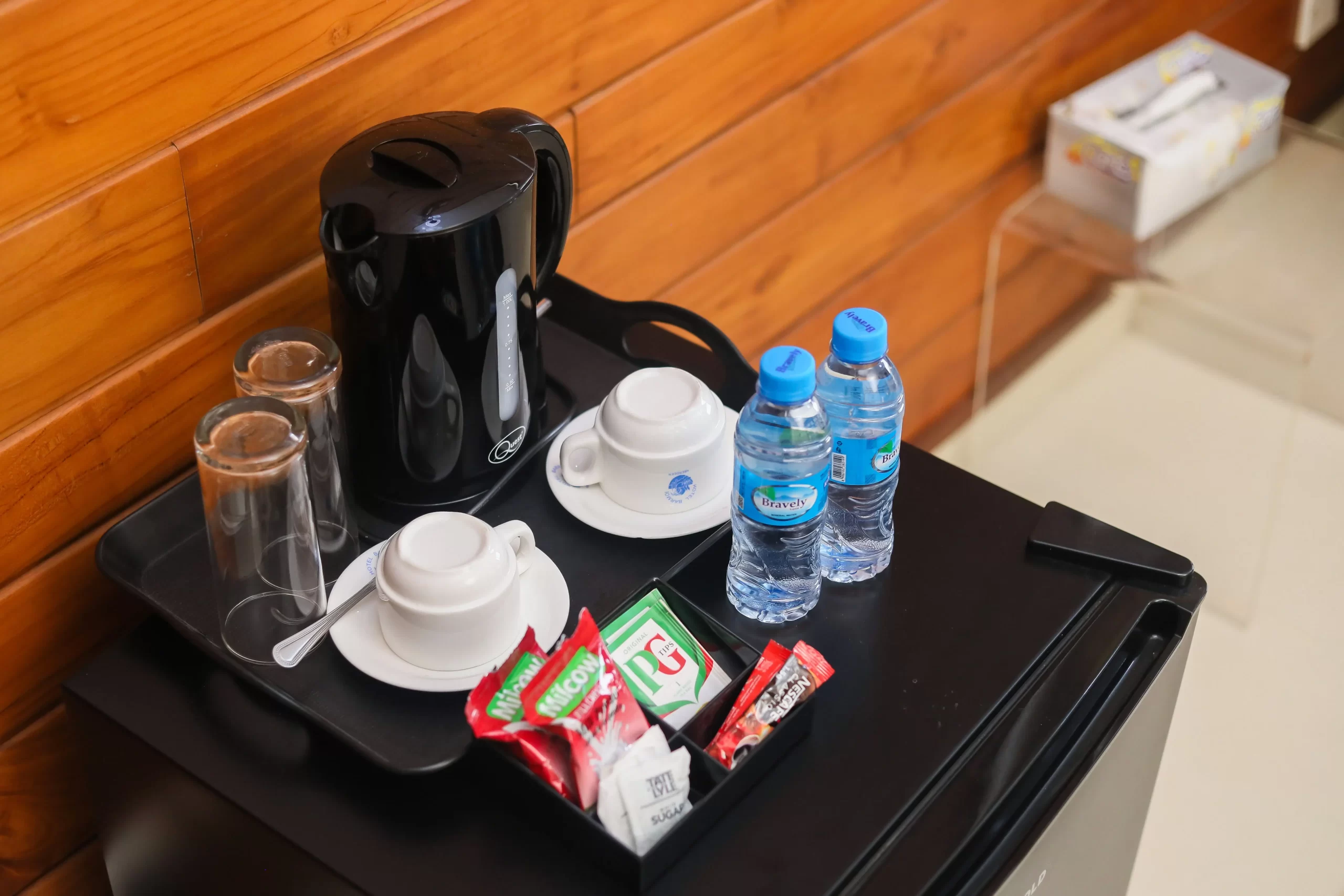 - Service station with Lavazza coffee machine, kettle and tea