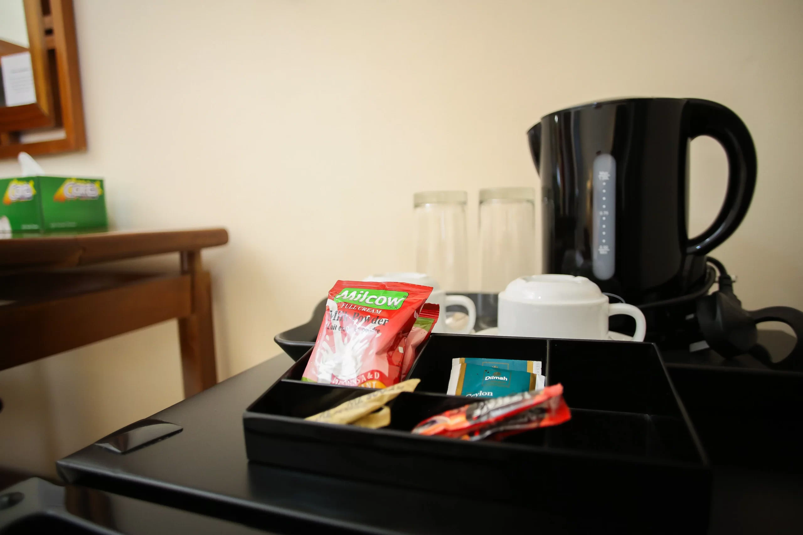 • Service station with Lavazza coffee machine, kettle and tea