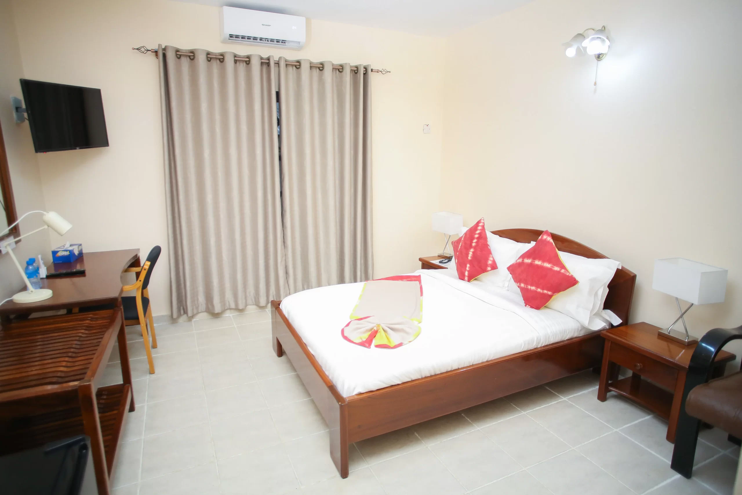 Step into luxury and embrace the tranquility of our Premium Sea View Room. Adorned with elegant furnishings and boasting breathtaking vistas of the Atlantic Ocean, this exclusive sanctuary invites you to indulge in a world of comfort and sophistication. With every detail meticulously curated to ensure a memorable stay, immerse yourself in unparalleled relaxation as you savor the beauty of Freetown’s coastal charm from your private oasis.